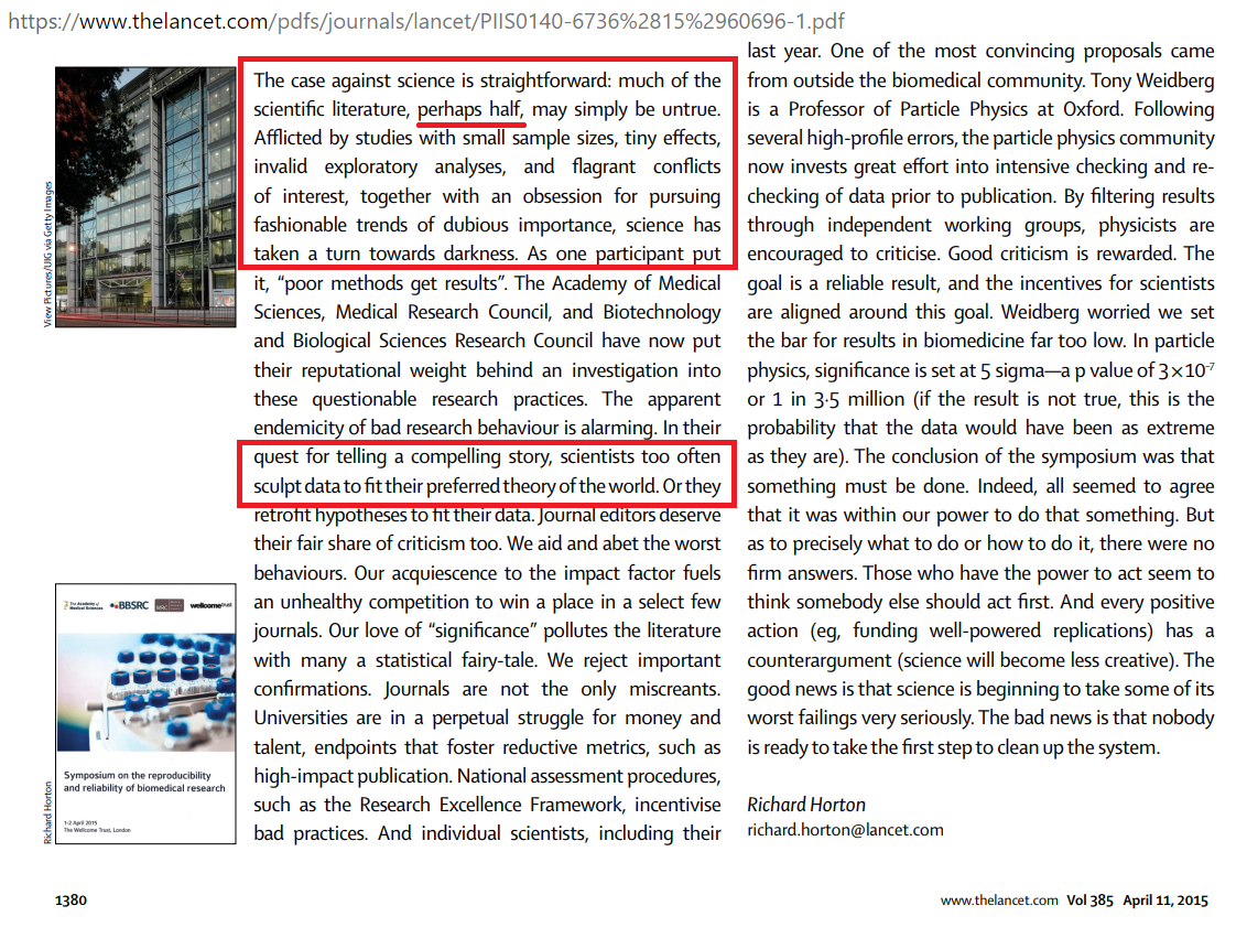 Dr. Horton recently published a statement declaring that a lot of published research is in fact unreliable at best, if not completely false.